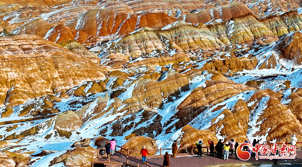 春節(jié)假期,張掖市七彩丹霞景區(qū)內(nèi)人頭攢動(dòng),全國(guó)各地游客慕名而來(lái),欣賞宛如夢(mèng)幻仙境般的雪浴丹霞地貌景觀,在領(lǐng)略大西北壯美景色中歡歡喜喜過(guò)大年。