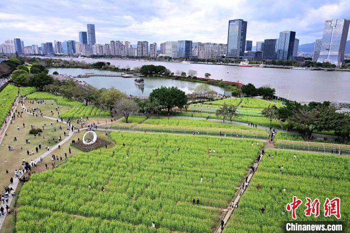 3月16日,游客在公園觀賞彩色油菜花。春日,福州花海公園魯冰花、小蒼蘭、油菜花等鮮花盛放,吸引了許多民眾前來漫步賞花,享受春天美好時光。中新社記者 張斌 攝