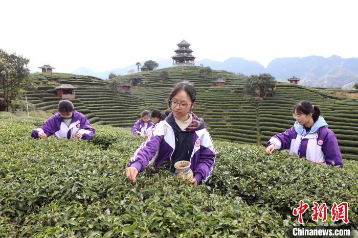 3月15日至16日,廣西柳州市一所中學(xué)組織千人研學(xué)團(tuán)到三江侗族自治縣八江鎮(zhèn)布央村仙人山景區(qū)開展茶文化研學(xué)活動(dòng),沉浸式采春茶、炒春茶、品春茶,深入了解茶種植、茶制作、茶文化、茶品鑒等知識(shí),進(jìn)一步培養(yǎng)實(shí)踐能力、提高勞動(dòng)素養(yǎng)。圖為研學(xué)活動(dòng)現(xiàn)場(chǎng)。龔普康 攝