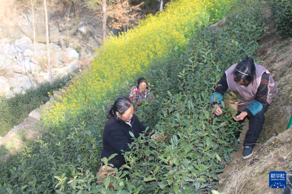 在文縣中廟鎮(zhèn)茶園村,村民正在采摘茶葉。新華社記者李杰 攝
