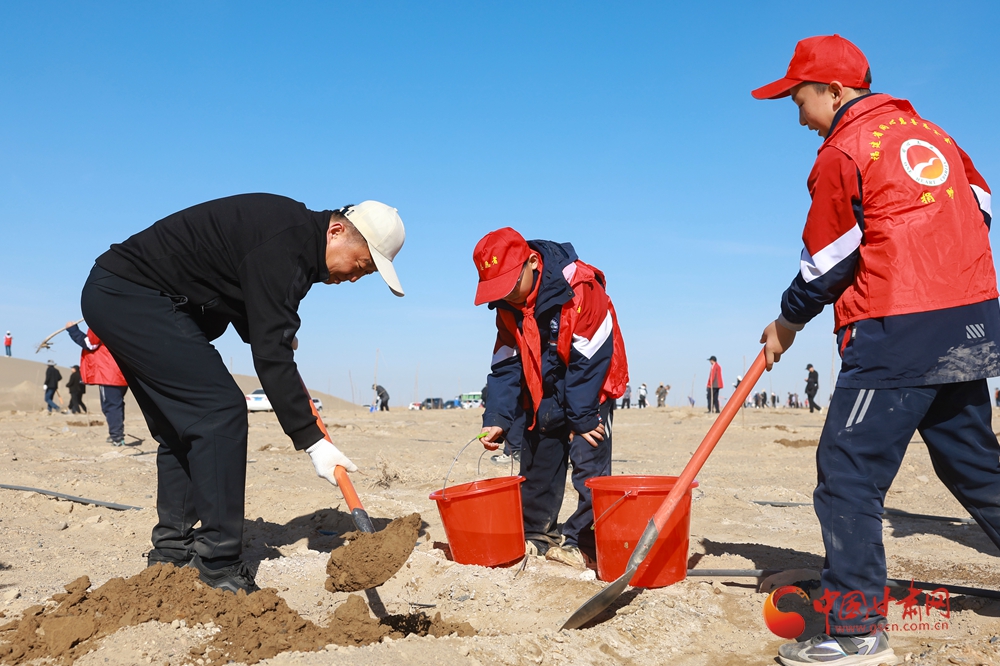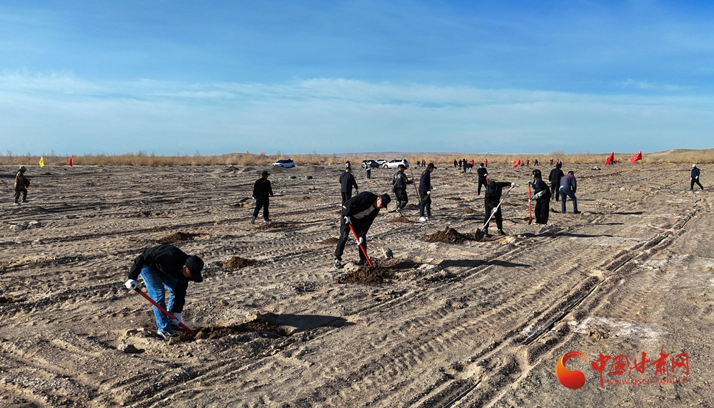 4月9日,酒泉市金塔縣金核公路城西義務(wù)植樹基地,來(lái)自酒泉市直機(jī)關(guān)和金塔縣的干部職工以及學(xué)生開展義務(wù)植樹活動(dòng)。