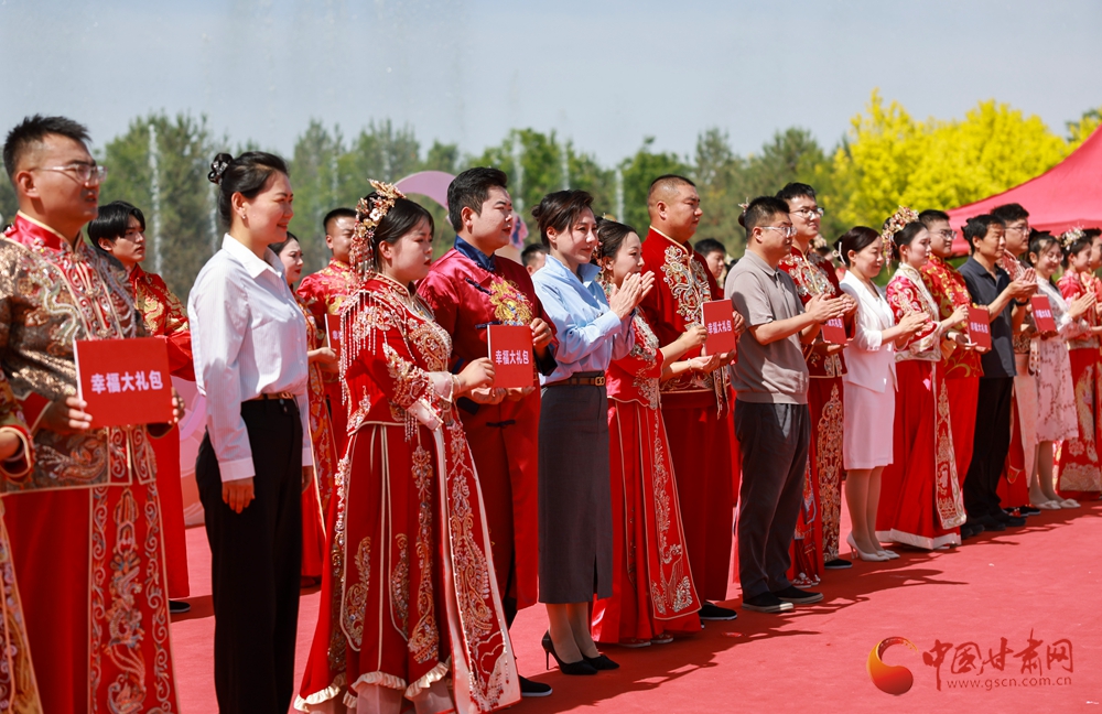 5月20日,酒泉市金塔縣“踐行新風(fēng) 青年先行”集體婚禮在文化廣場舉辦,來自全縣各行各業(yè)的20對新時代青年代表參加,在親朋好友和現(xiàn)場觀眾的見證下喜結(jié)良緣,共同開啟幸福人生新旅程。