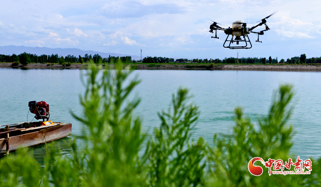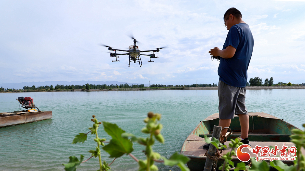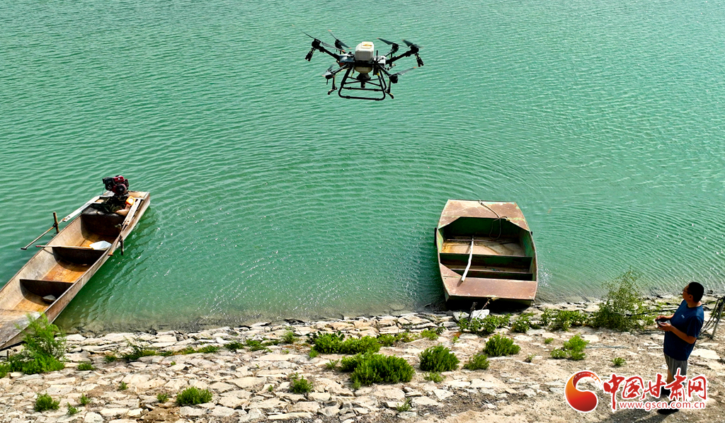 6月24日,在高臺縣夾溝湖水庫螃蟹養(yǎng)殖基地,無人機操作手啟動設(shè)備,載滿飼料的無人機沿預(yù)設(shè)航線在800多畝螃蟹養(yǎng)殖基地上空精準(zhǔn)投喂。