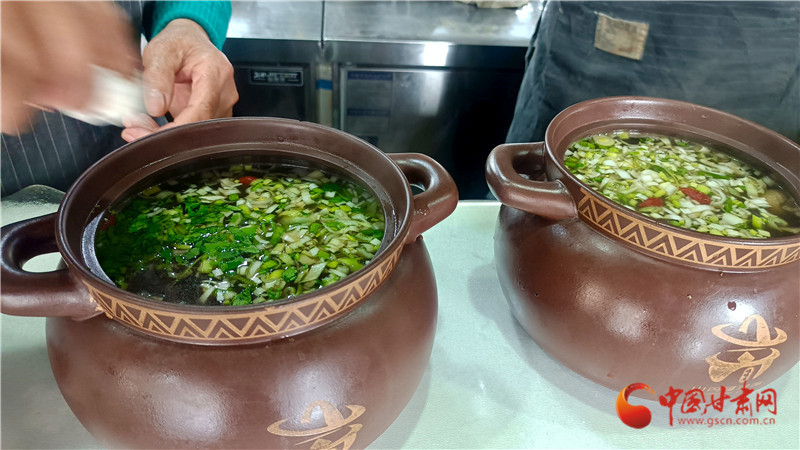 “選材不能將就,三年以上的羯羊,肉質(zhì)才夠緊實(shí);配菜必用山丹野生地耳、發(fā)菜,這是罐罐席的魂。”凌晨五點(diǎn),王永德已穿梭在農(nóng)貿(mào)市場(chǎng),指尖劃過羊肉紋理,便能辨出新鮮與否。“緊火煮肉,慢火煨湯,火候差一分,味道就薄一寸。”王永德從吊湯、炒糖色到下料煨香,八道工序環(huán)環(huán)相扣,八小時(shí)文火慢熬,方得一罐琥珀色的濃湯。