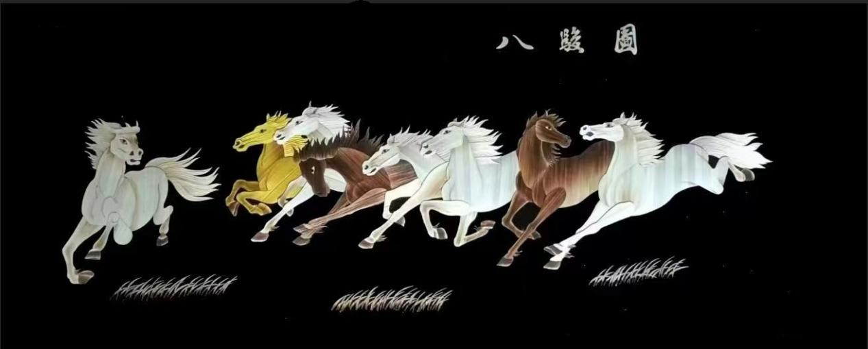 (唐彩萍麥稈畫《八駿圖》)