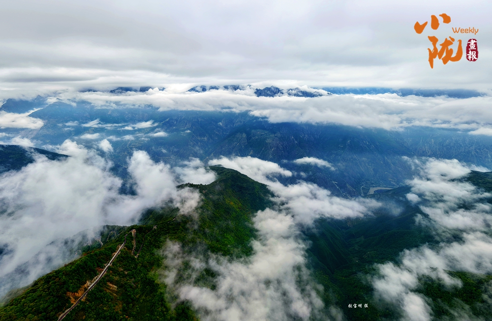 雨后,近處的山巒,青翠欲滴,山間云霧繚繞,如同一條條白色的絲帶,纏繞在山腰間,時(shí)而聚攏,時(shí)而散開(kāi),時(shí)而漫過(guò)山頂,讓遠(yuǎn)山如海中仙島。