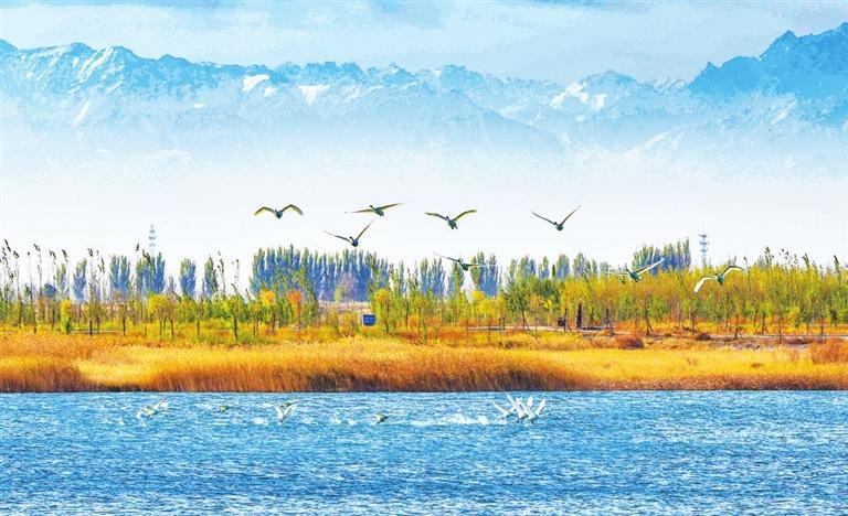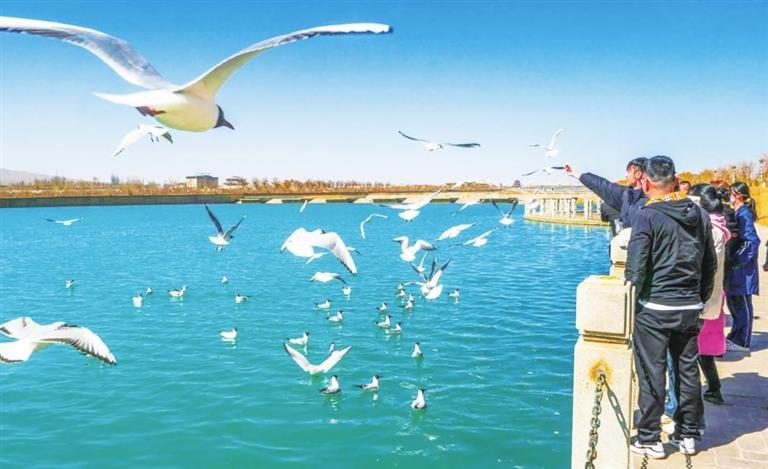 現(xiàn)在一到春天,嘉峪關市就會迎來一大批特殊的“訪客”——遺鷗、紅嘴鷗、漁鷗成群結隊,或翱翔于湛藍天空,或嬉戲于碧波之上。游客、市民爭相前往觀賞千鳥齊翔的震撼場景,一幅人與自然和諧相處的美好畫卷躍然眼前。