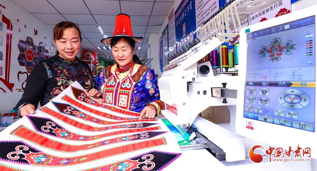 隨著機(jī)械臂精準(zhǔn)移動(dòng)、數(shù)字設(shè)備高速運(yùn)行,過(guò)去,手工完成一套裕固族服裝需耗時(shí)近一年;如今依托智能機(jī)器與手工協(xié)作的模式,僅一周即可制成,且圖案新穎、繡工勻整。裕固族、藏族、蒙古族等民族服裝的制作成本也降至原來(lái)的三分之一。