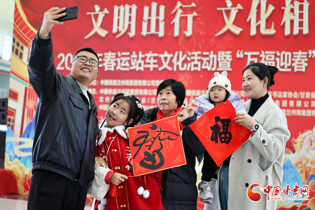 2月2日,2026年鐵路春運(yùn)大幕正式拉開。中國鐵路蘭州局集團(tuán)有限公司在蘭州西站候車廳開展“文明出行 文化相伴”特色暖心活動(dòng),邀請(qǐng)書法愛好者揮毫寫春聯(lián)、贈(zèng)“福”字,同時(shí)奉上精彩文藝表演,為旅客的回家路增添濃濃年味與溫情。