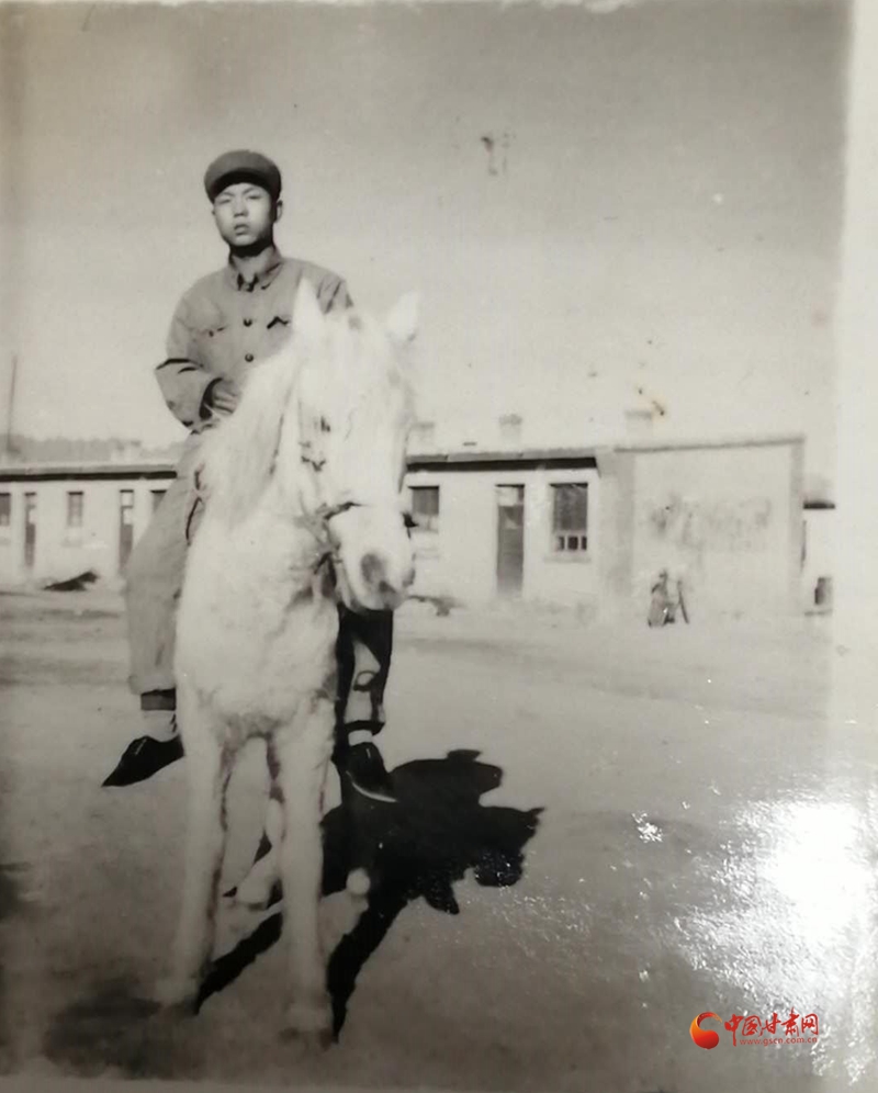 照片是它傷愈后,我?guī)F(tuán)部獸醫(yī)站檢查身體時(shí)拍的。我站在它旁邊,年輕的臉,驕傲的神情。它還是那樣安靜地站著,像一位沉默的老兵。