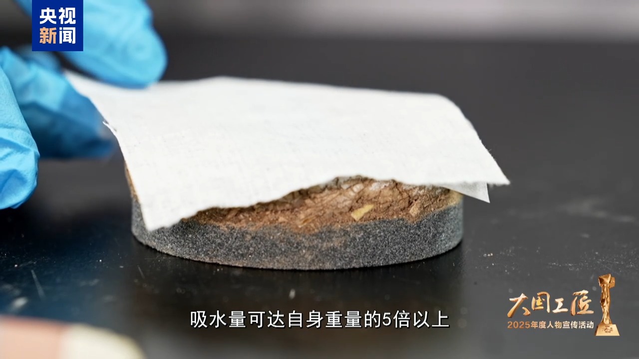 反復(fù)探尋,樊再軒和團(tuán)隊(duì)終于鎖定了一種最優(yōu)材料,吸水量可達(dá)自身重量的5倍以上,持水性能優(yōu)異,并且不會(huì)對珍貴壁畫造成損傷。