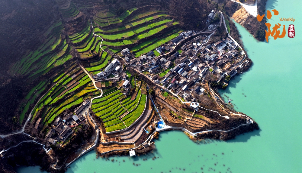 那一叢叢、一簇簇的油菜花,沿著梯田層層疊疊,從江邊一直蔓延到半山腰,鋪展在青山碧水之間;又像是大地剛剛蘇醒時(shí),打翻的調(diào)色盤。