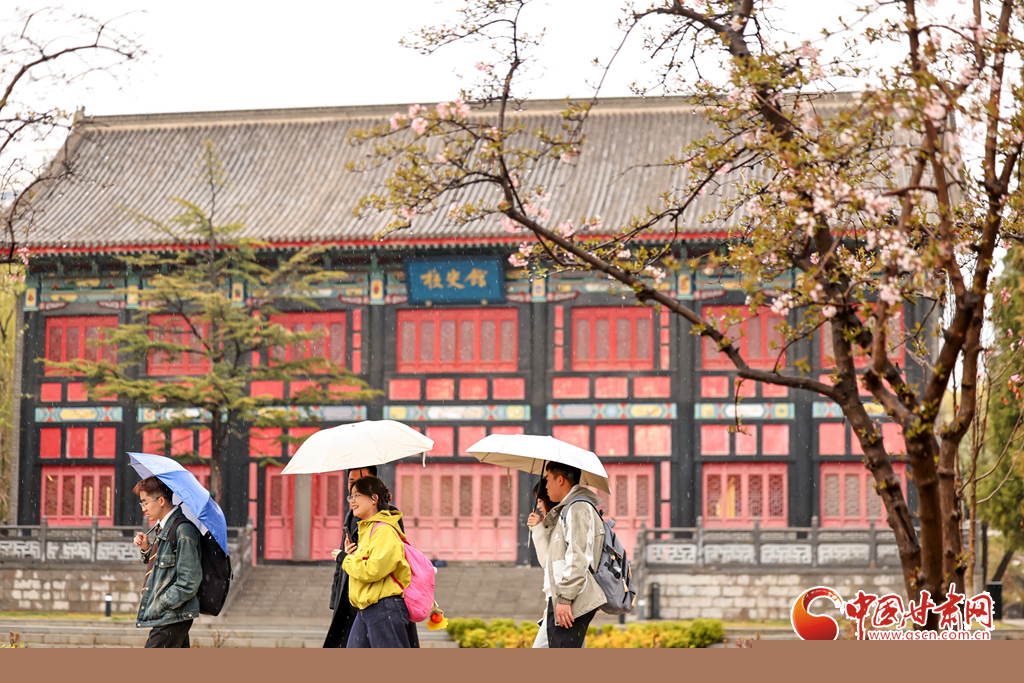 3月29日,蘭州迎來降雨天氣。蘭州大學(xué)校園內(nèi)細(xì)雨綿綿,繁花帶露,師生漫步雨中賞花觀景,盡享春日詩意。溫潤春雨潤澤金城,勾勒出清新雅致的春日畫卷。