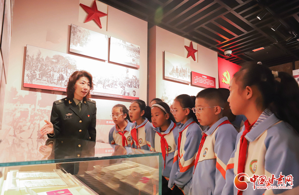 3月30日,高金城烈士紀念館內(nèi),張掖市甘州區(qū)北街小學(xué)的同學(xué)們正在聆聽講解員講述革命烈士的壯烈事跡。